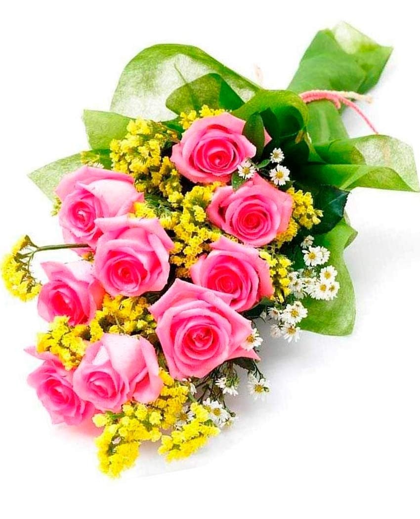 Ramo de flores para difuntos hecho utilizando rosas de color rosa, paniculata y solidago. Las rosas de este color transmiten ternura y compasión. El precio incluye entrega urgente y gratuita en los principales tanatorios, velatorios y capillas de Madrid, envoltorios, lazadas y cinta con inscripción dedicatoria personal, familiar o de empresa.